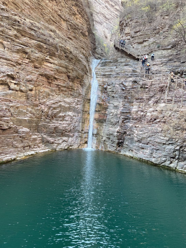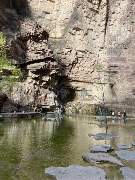 27日早上在公司集合后,大家乘坐大巴車經(jīng)過三個小時的行程,到達了太行大峽谷景區(qū)。入住酒店及午餐后,首先游覽了有太行魂之稱的王相巖景區(qū)。王相巖景區(qū)自唐以來,享有盛名,景區(qū)東臨溪水,西依懸崖,左右兩側峭壁環(huán)繞,形成了一個閉合性極強的圍谷,暗合中國古代風水學“左青龍、右白虎、前朱雀、后玄武”的理想模式,吸引了歷代名人雅士來此修身隱居。在攀爬過程中,陡峭、曲徑隨處可見。大家一方面驚嘆大自然的巧奪天工,一方面感受大自然的美。